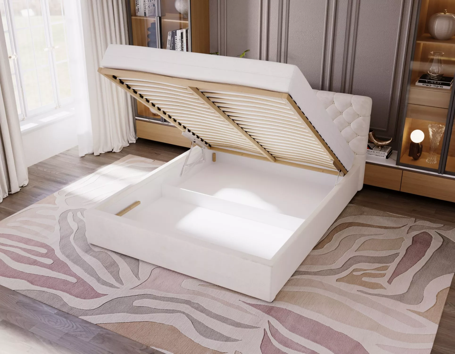 Pohodlná čalúnená posteľ 180x200 MARLISA SLIM 1 s úložným priestorom - béžová