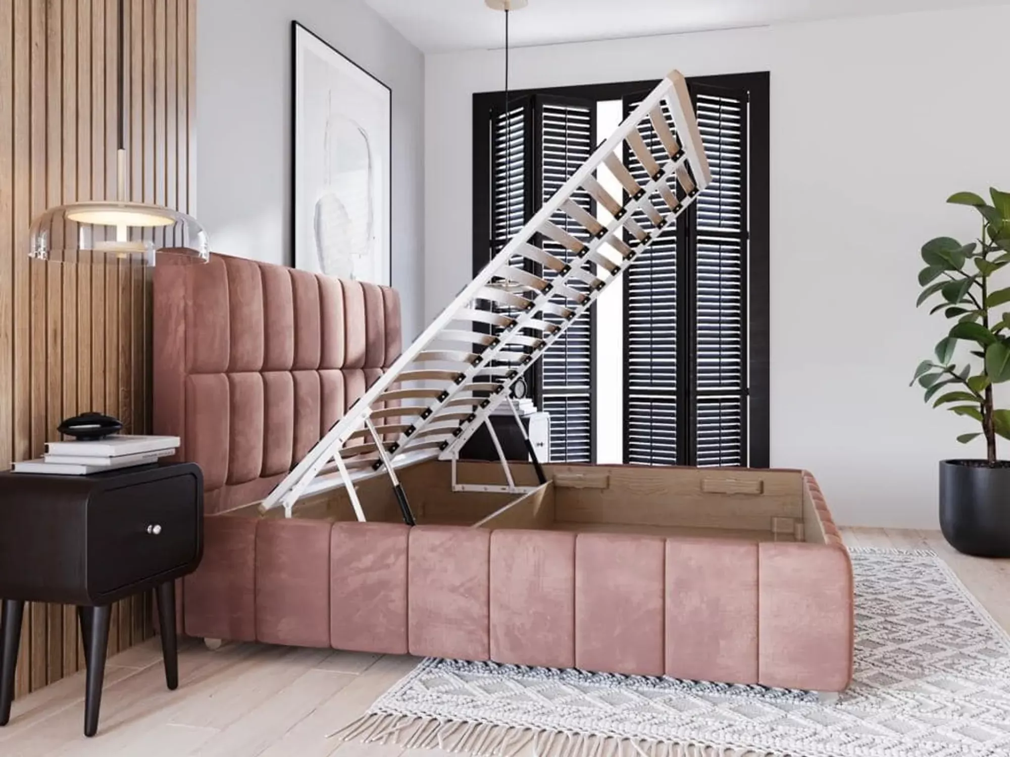 Moderná posteľ 180x200 ARLETE 2 s úložným priestorom vám zaistí pohodlný spánok a skrášli každú spálňu. Čalúnené čelo zamedzí poškriabaniu a zašpineniu steny.
