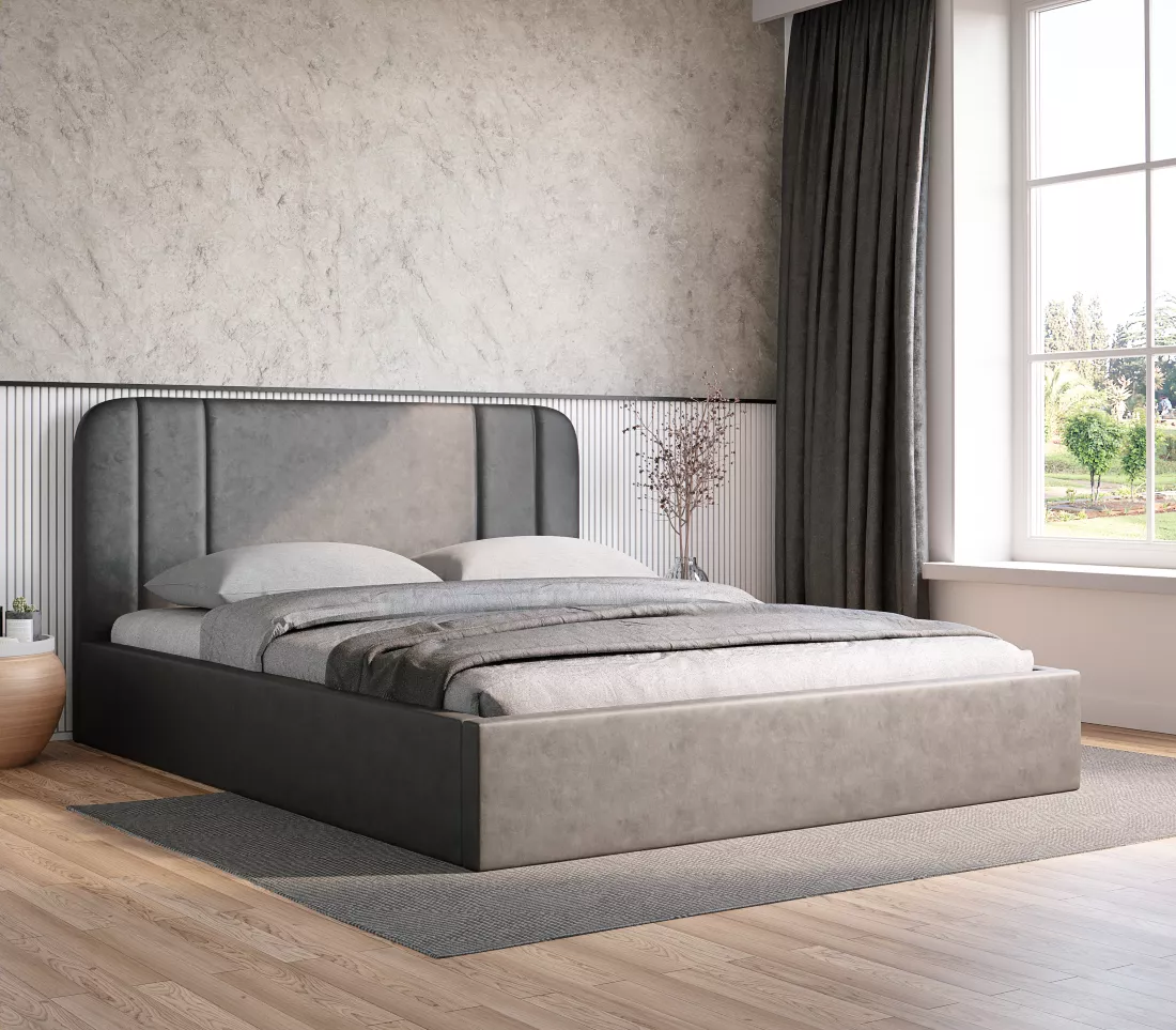 Čalúnená posteľ 180x200 MARGARIDA kombinuje pohodlie s moderným štýlom. Posteľ disponuje praktickým úložným priestorom. Vysoké čelo poskytne príjemný komfort pri čítaní kníh alebo sledovaní televízie.