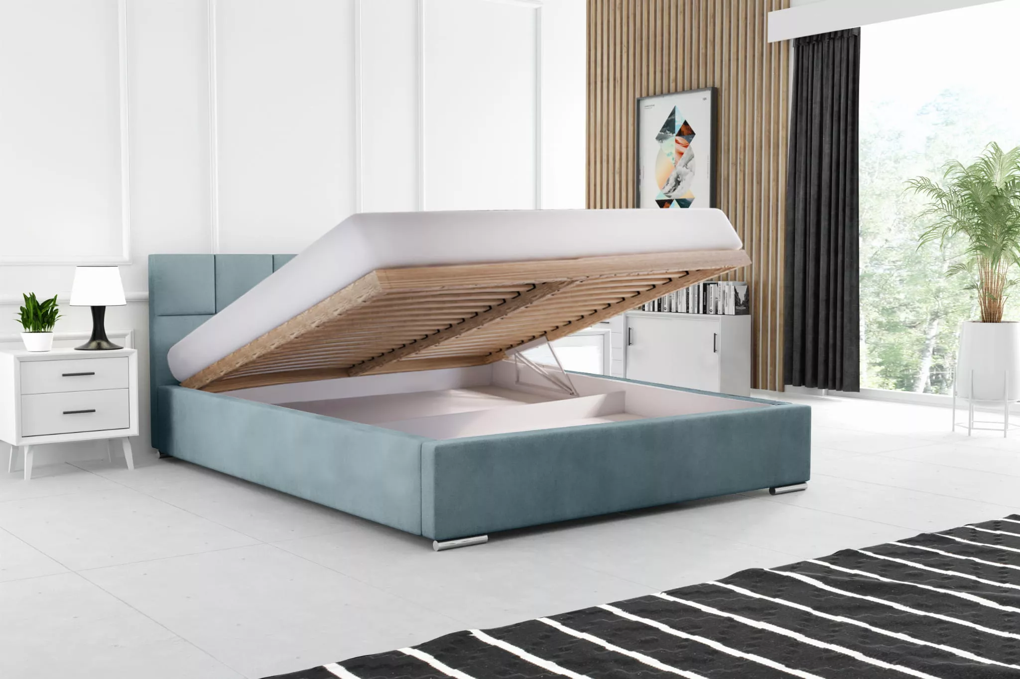 Moderná čalúnená posteľ 160x200 RUBINA 2 skvele zapadne do každej spálne. Posteľ je vybavená praktickým úložným priestorom a vysokým čelom, ktoré poskytuje príjemný komfort pri čítaní kníh alebo sledovaní televízie.