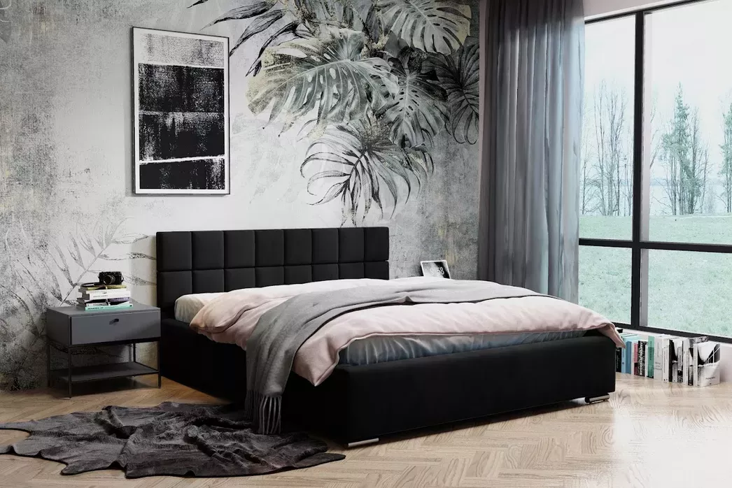 Čalúnená posteľ 200x200 RICARDINA s prešívaným čelom - čierna