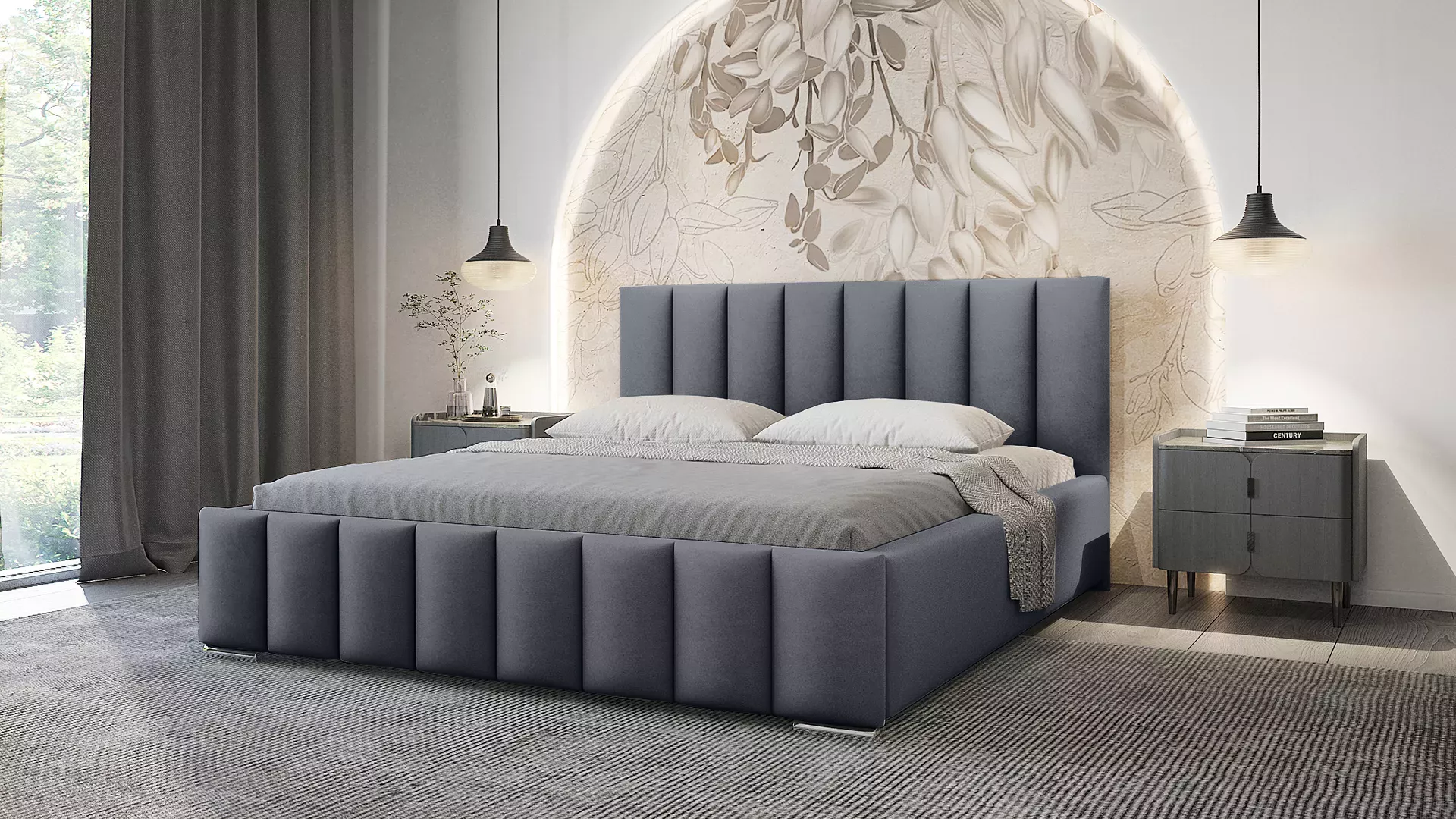 Elegantná čalúnená posteľ 200x200 MADALENA 2 s úložným priestorom - šedá