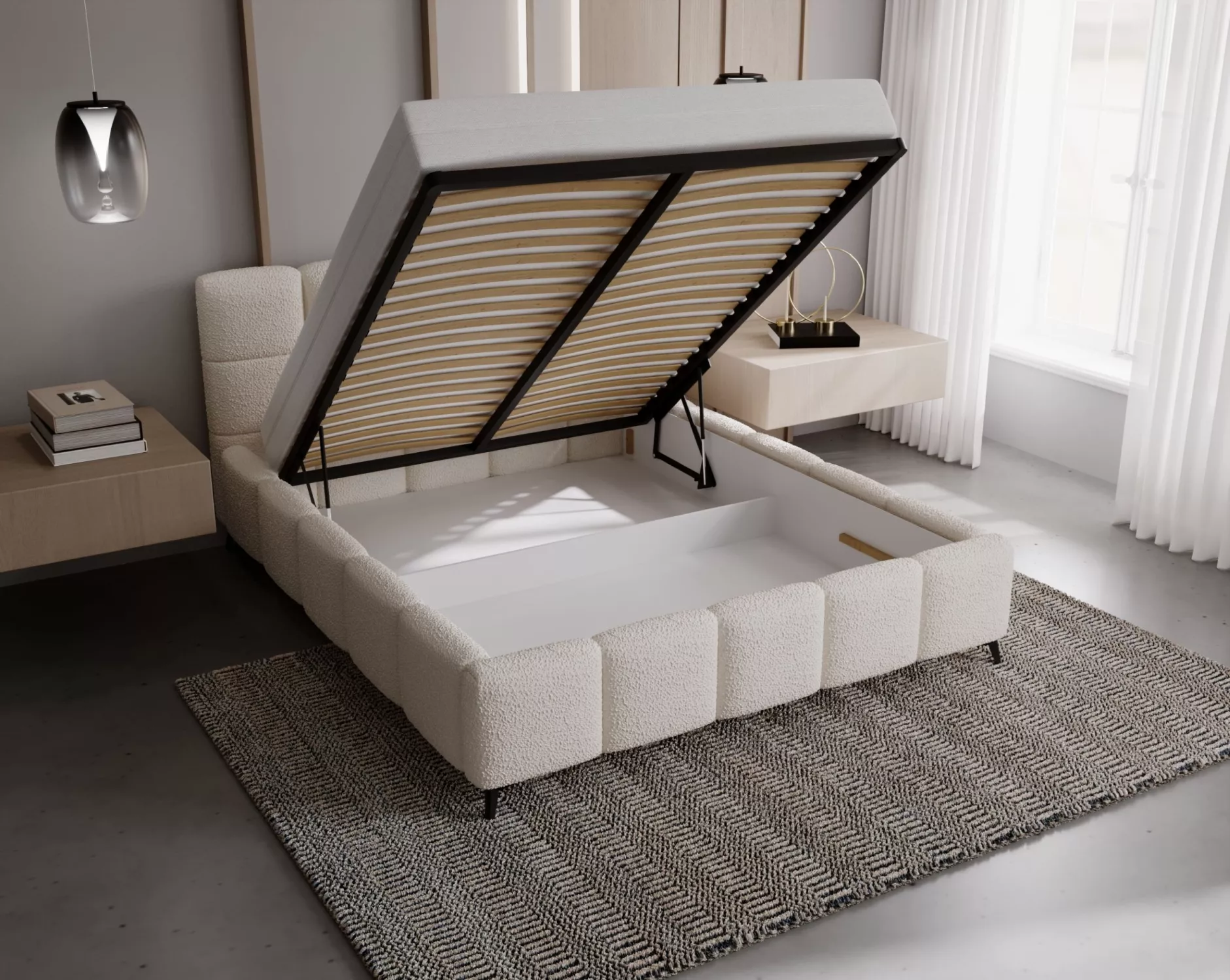 Čalúnená posteľ 180x200 ARMINDA 2 s úložným priestorom - krémovo biela