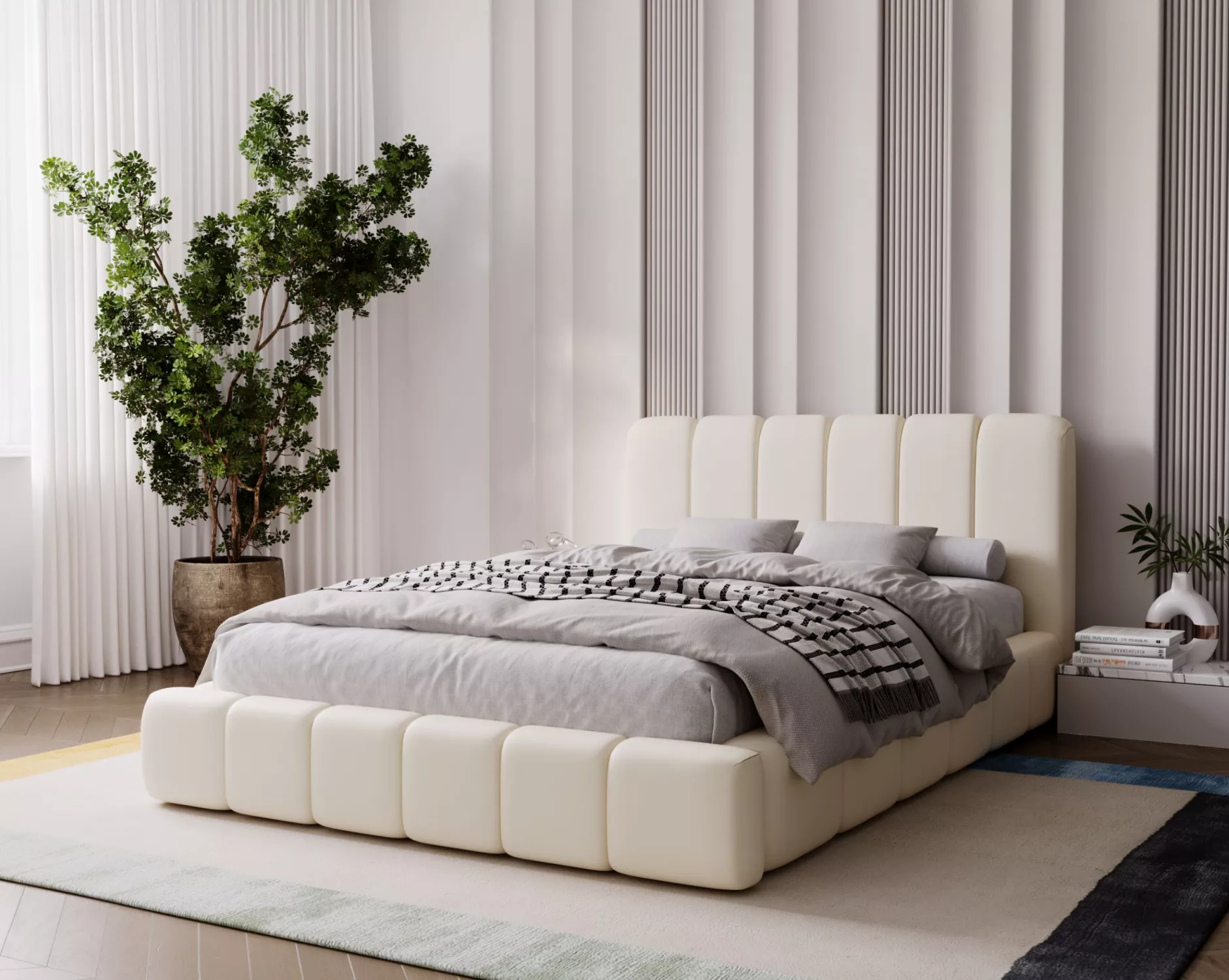 Čalúnená posteľ 160x200 FATUMATA 2 s úložným priestorom - krémová