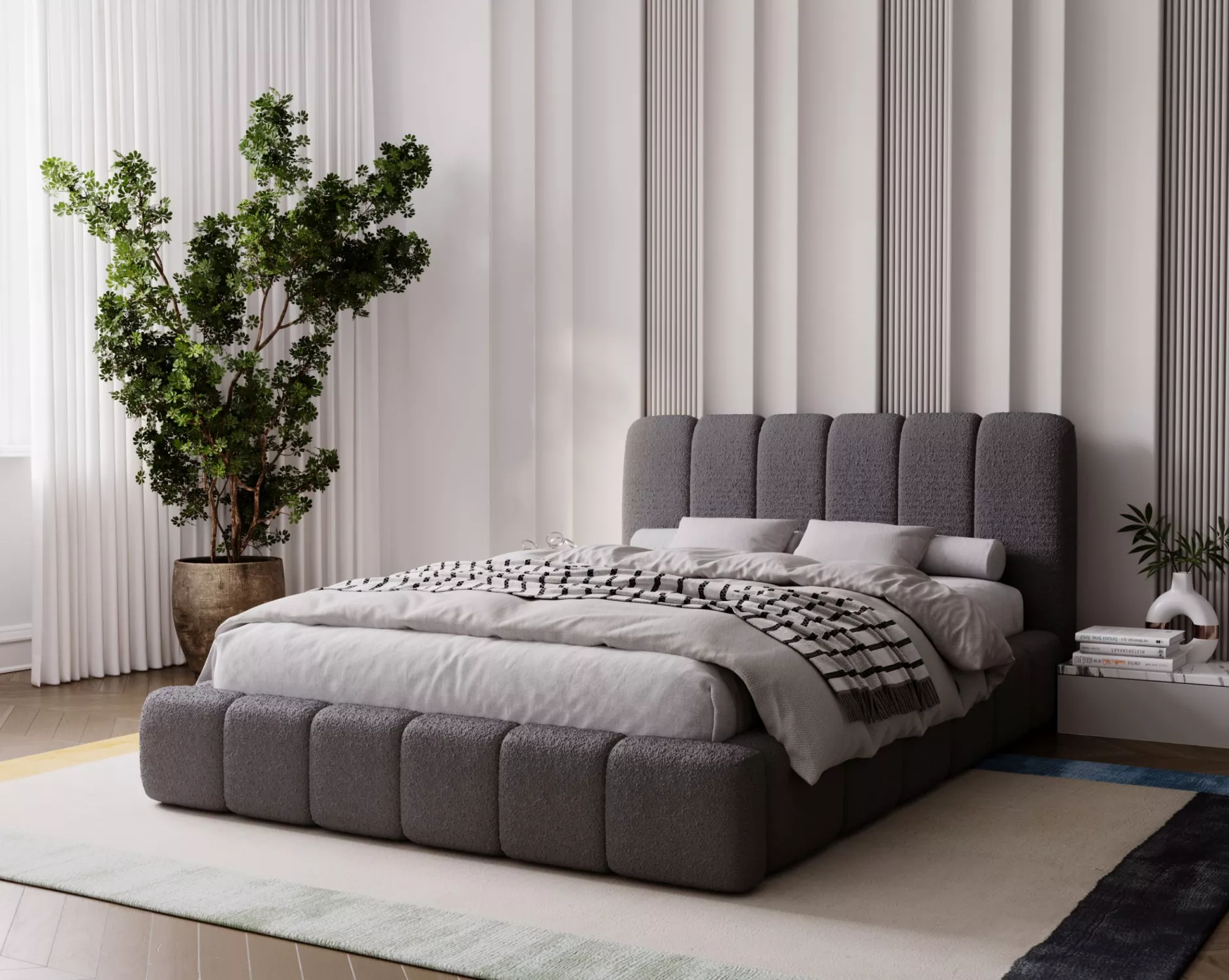 Čalúnená posteľ 180x200 FATUMATA 2 s úložným priestorom - tmavo šedá