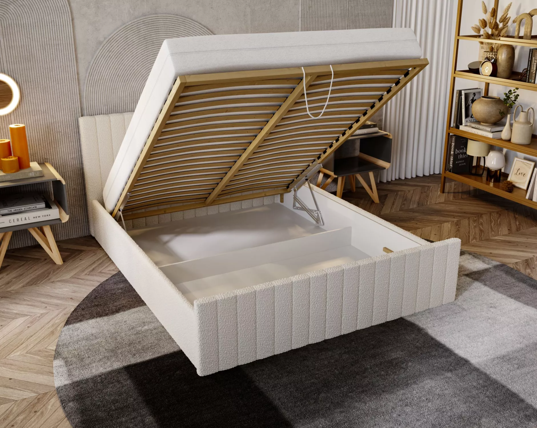 Manželská posteľ 140x200 TEREZIE SLIM 1 s úložným priestorom - krémová
