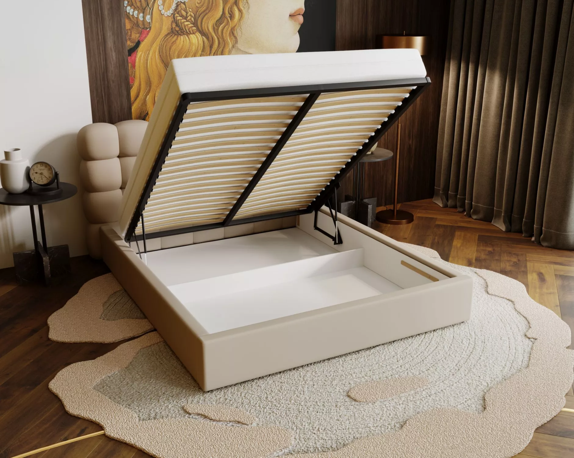 Pohodlná čalúnená posteľ 200x200 VANIA 2 s úložným priestorom - béžová