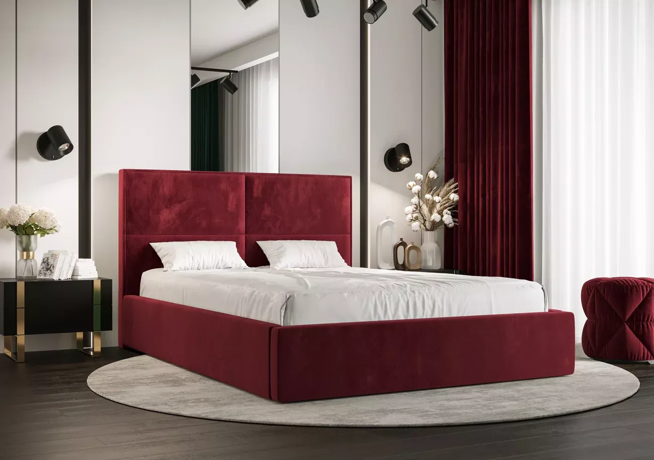 Dizajnová posteľ 180x200 MARIJA 1 s úložným priestorom a roštom - červená