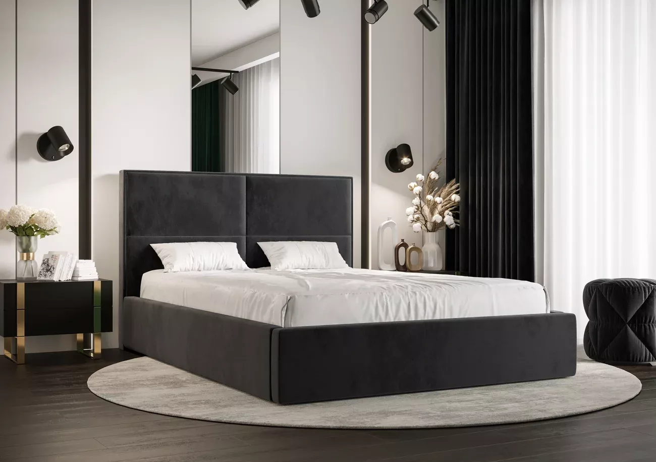 Dizajnová posteľ 180x200 MARIJA 1 s úložným priestorom a roštom - tmavo šedá