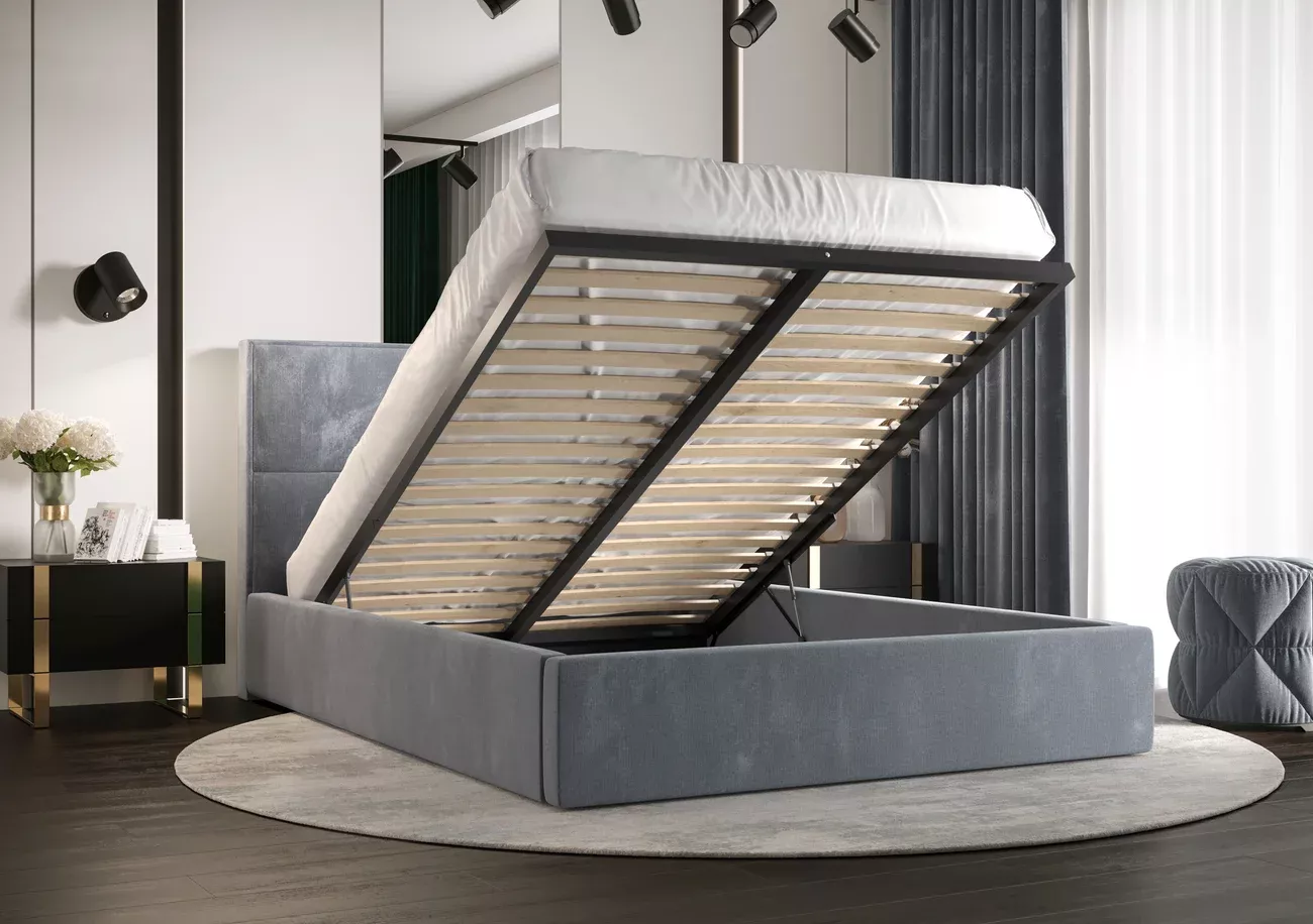 Dizajnová posteľ 180x200 MARIJA 1 s úložným priestorom a roštom skvele zapadne do každej študentskej izby. Čalúnené čelo zamedzí poškriabaniu a zašpineniu steny.