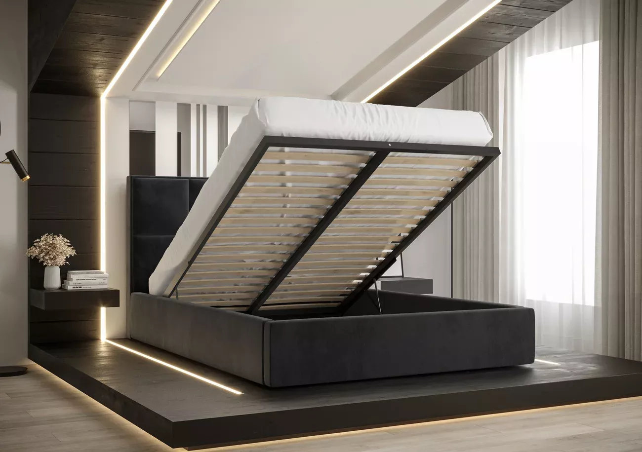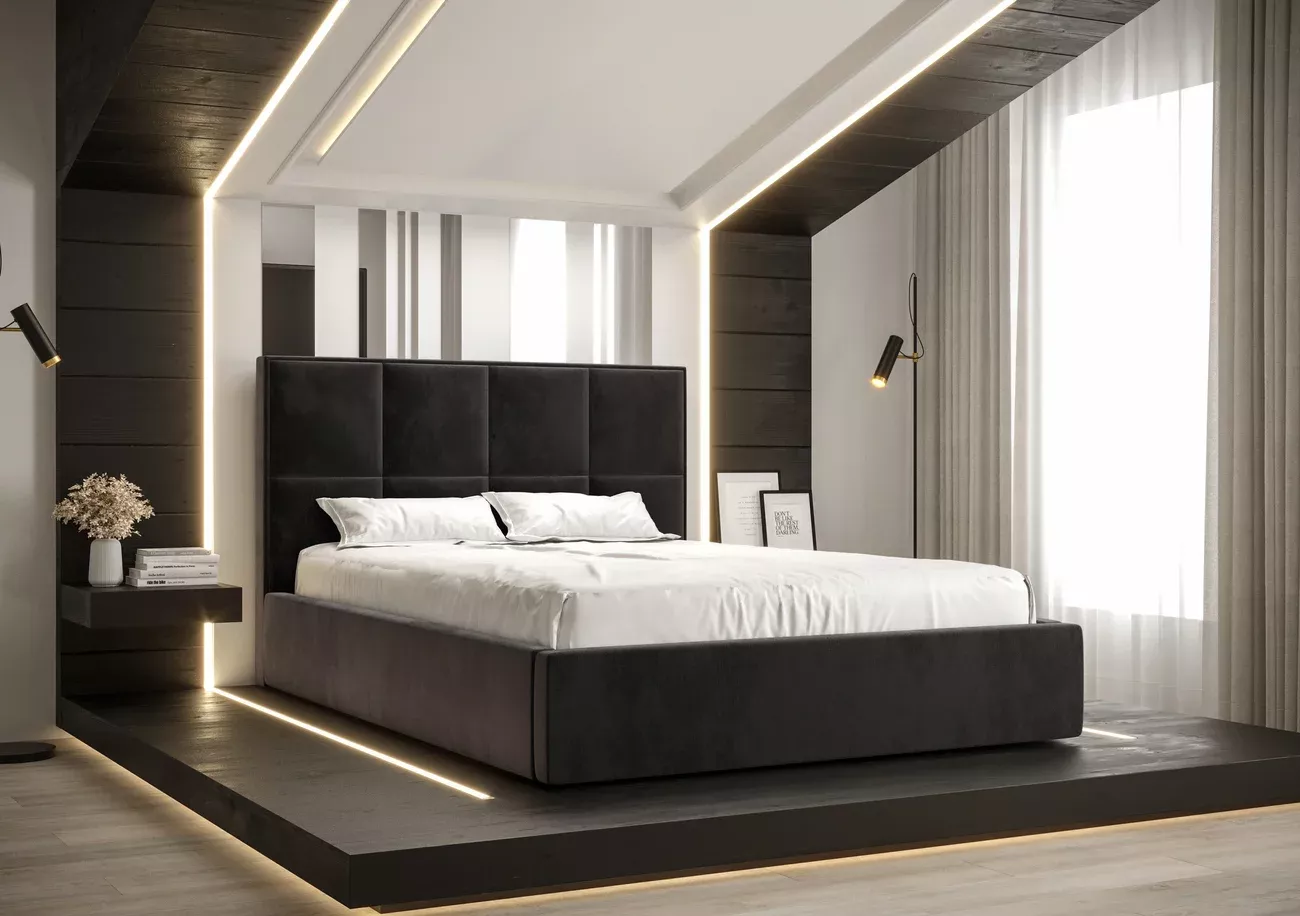 Štýlová manželská posteľ 180x200 IMRA 1 s roštom nadchne všetkých nadšencov minimalistického a moderného štýlu. Posteľ disponuje praktickým úložným priestorom na uloženie lôžkovín alebo sezónneho oblečenia.