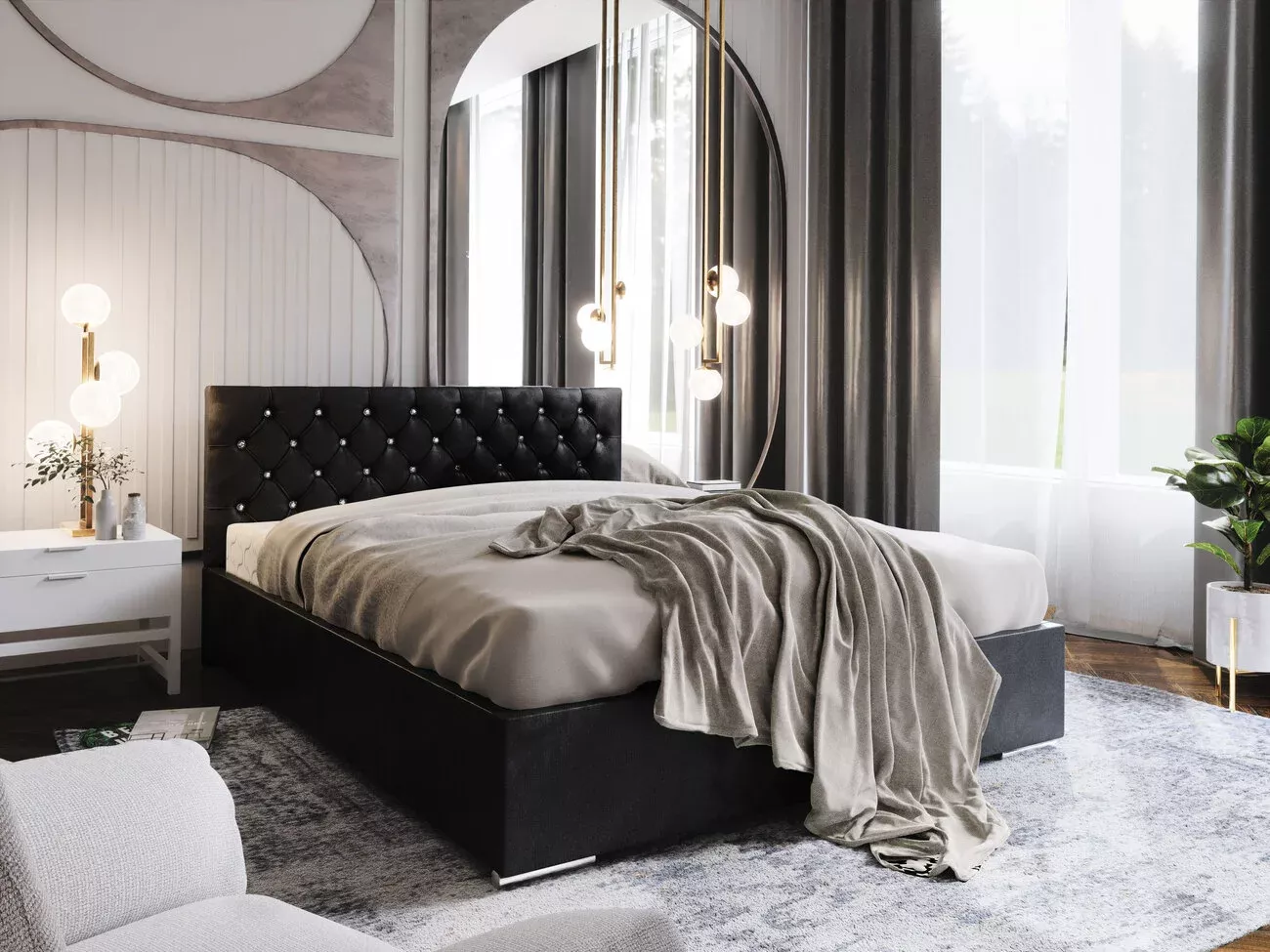 Dizajnová posteľ 180x200 EITHNE 1 s roštom - čierna