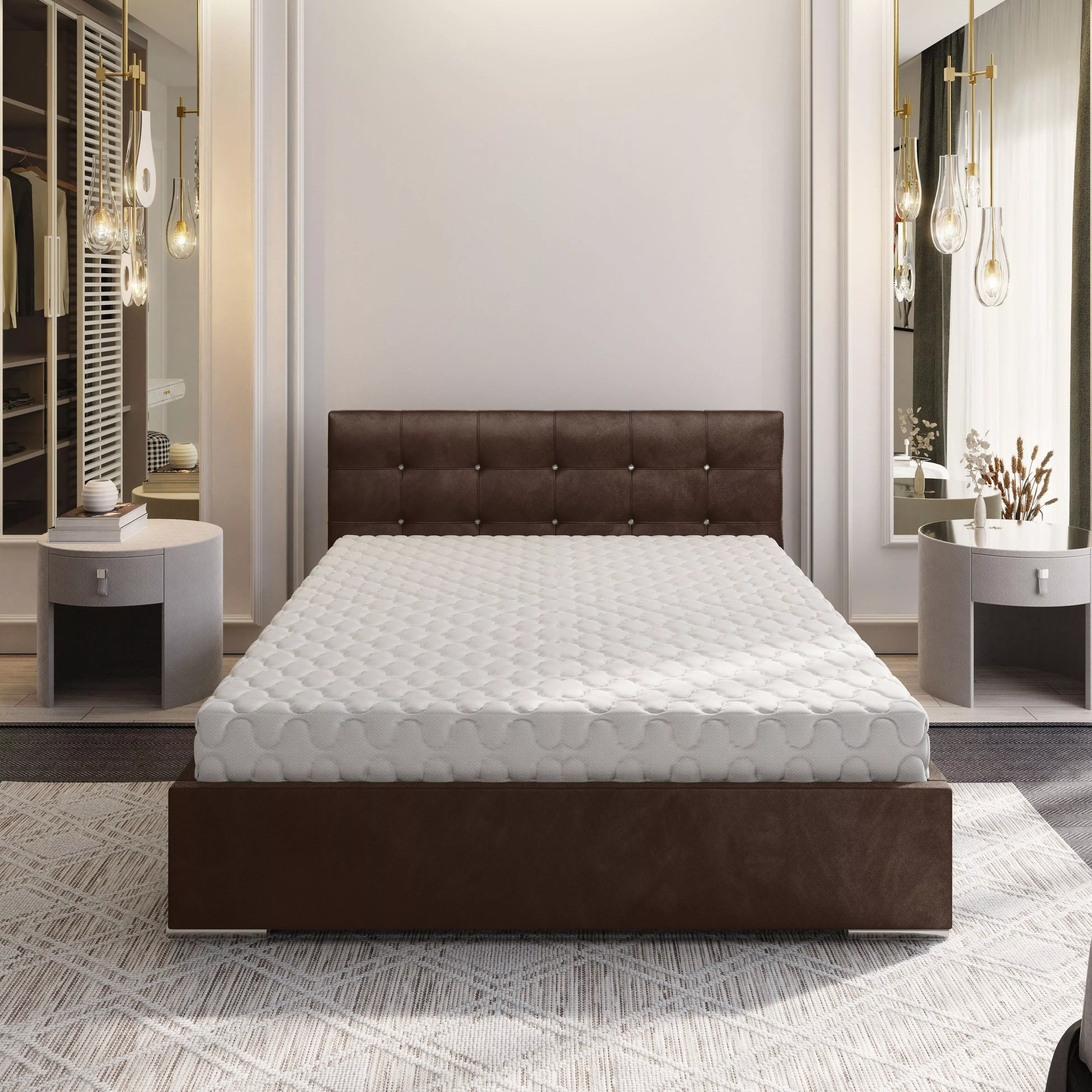 Čalúnená dvojlôžková posteľ 180x200 HATA 1 s úložným priestorom je priamo stvorená pre kvalitný odpočinok. S elegantne prešívaným čelom získava lôžko nadčasový vzhľad, nechýba ani praktický úložný priestor.
