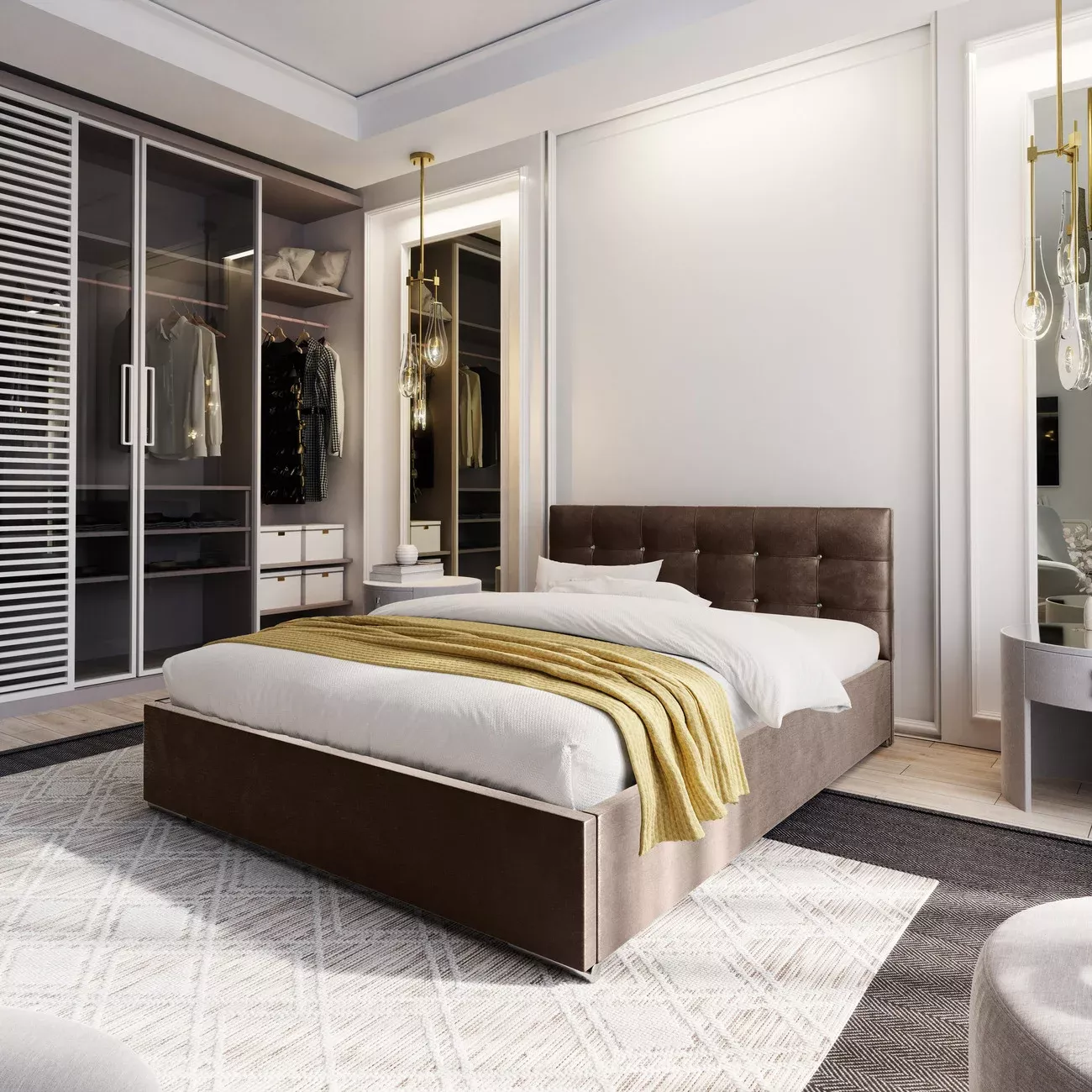 Čalúnená dvojlôžková posteľ 180x200 HATA 1 s úložným priestorom - tmavo hnedá