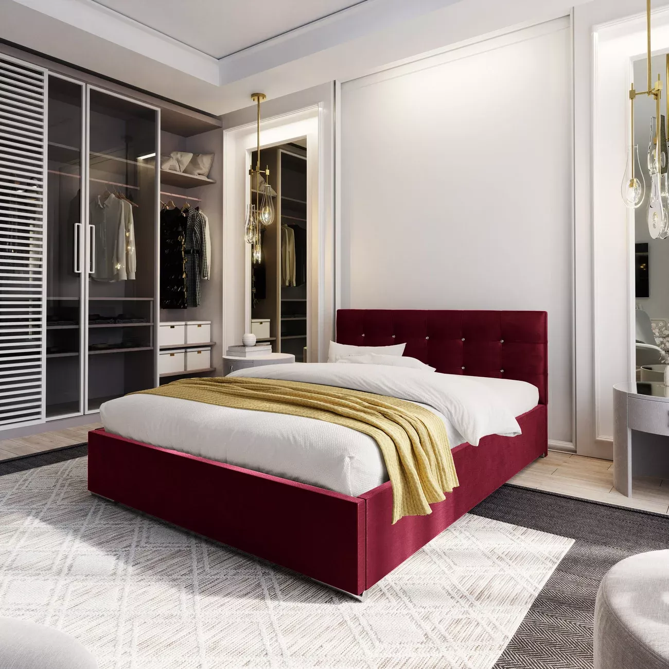 Čalúnená dvojlôžková posteľ 180x200 HATA 1 s úložným priestorom - červená