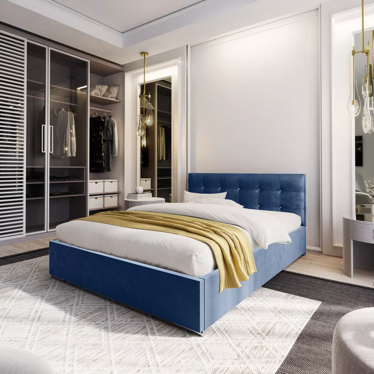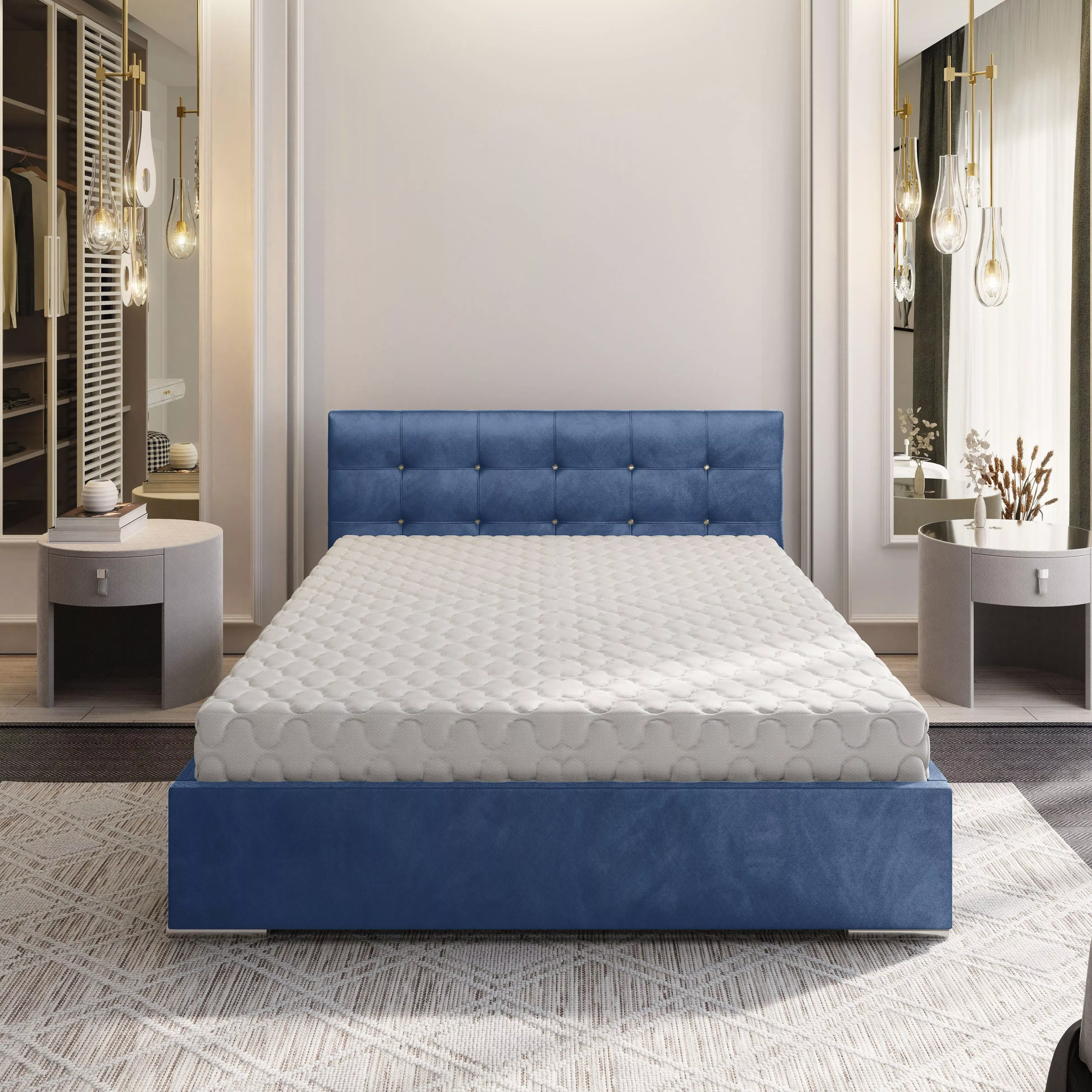 Čalúnená dvojlôžková posteľ 180x200 HATA 1 s úložným priestorom - modrá