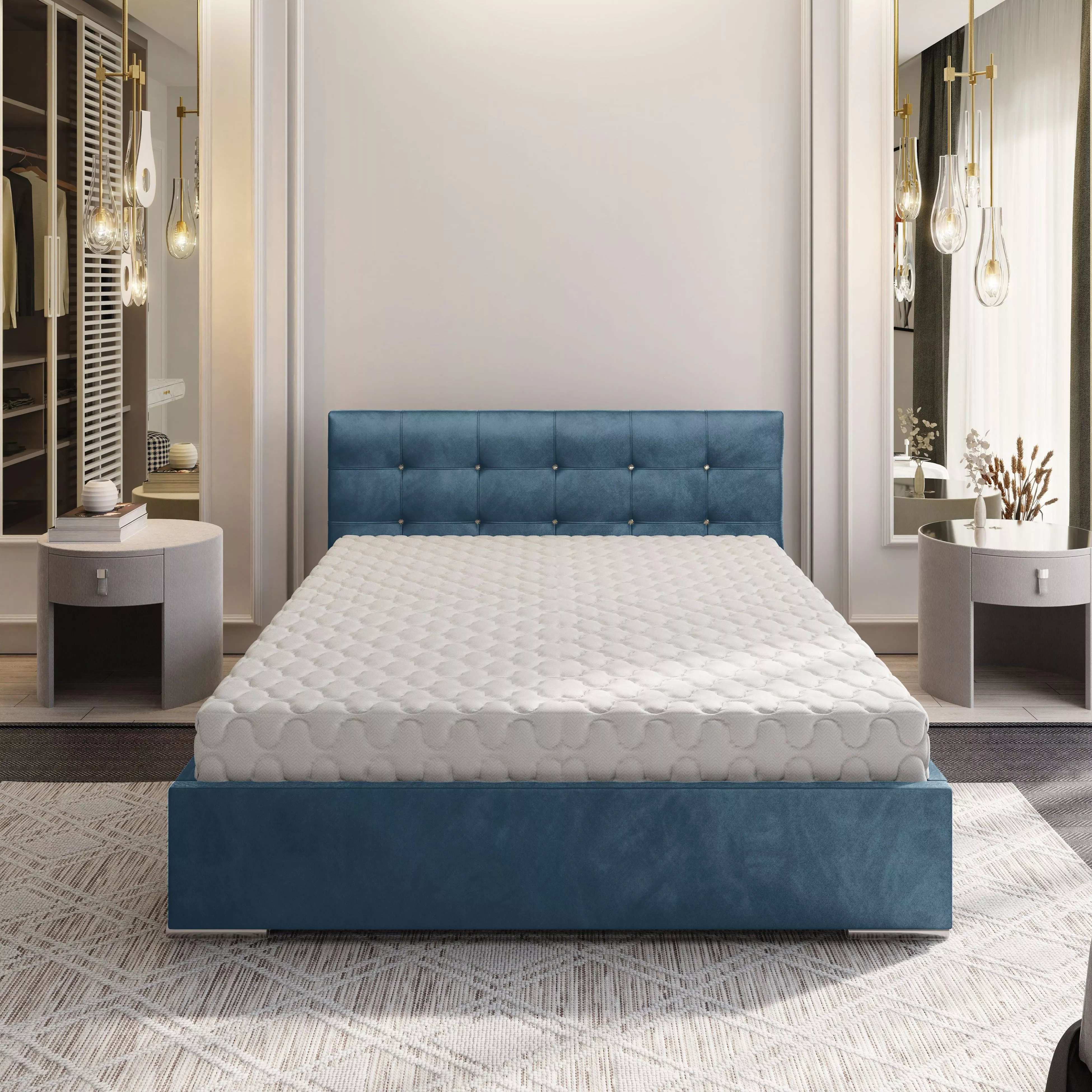Čalúnená dvojlôžková posteľ 180x200 HATA 1 s úložným priestorom je priamo stvorená pre kvalitný odpočinok. S elegantne prešívaným čelom získava lôžko nadčasový vzhľad, nechýba ani praktický úložný priestor.