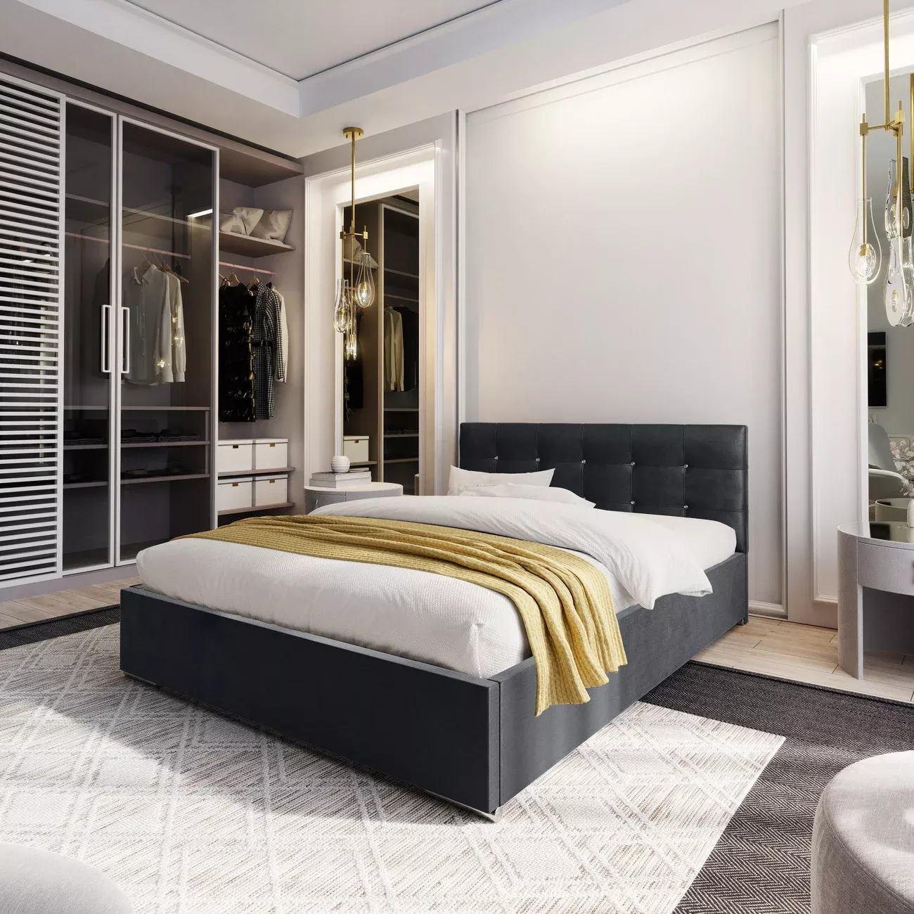 Čalúnená dvojlôžková posteľ 180x200 HATA 1 s úložným priestorom - tmavo šedá