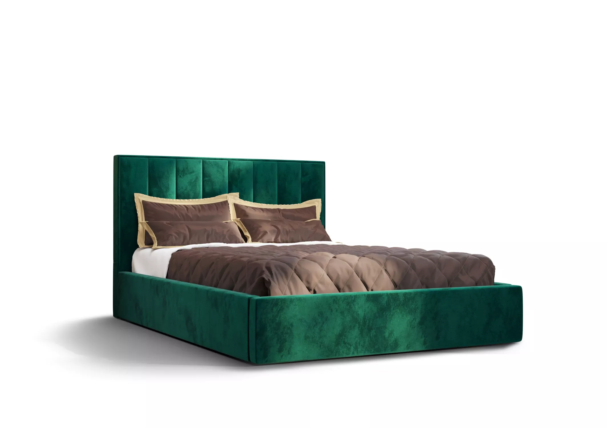 Čalúnené dvojlôžko 160x200 WALTRAUD 1 s roštom a úložným priestorom - zelené