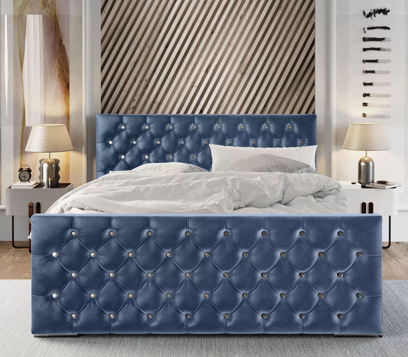 Luxusná manželská posteľ 160x200 NIKOLETA 1 s úložným priestorom - modrá