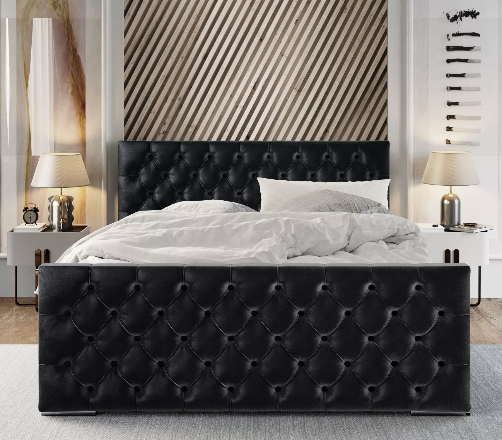 Elegantná čalúnená posteľ 140x200 ROSEMARIE 1 s úložným priestorom - čierna
