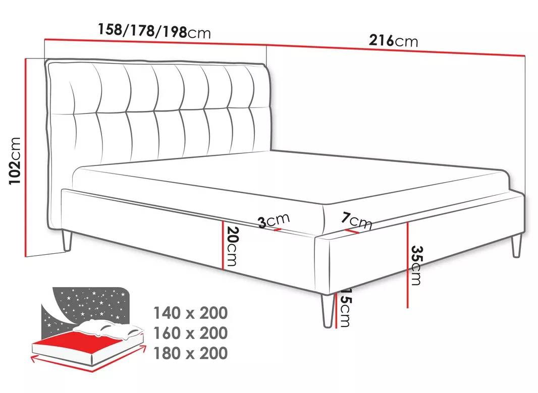 - ložná plocha: 180x200 cm