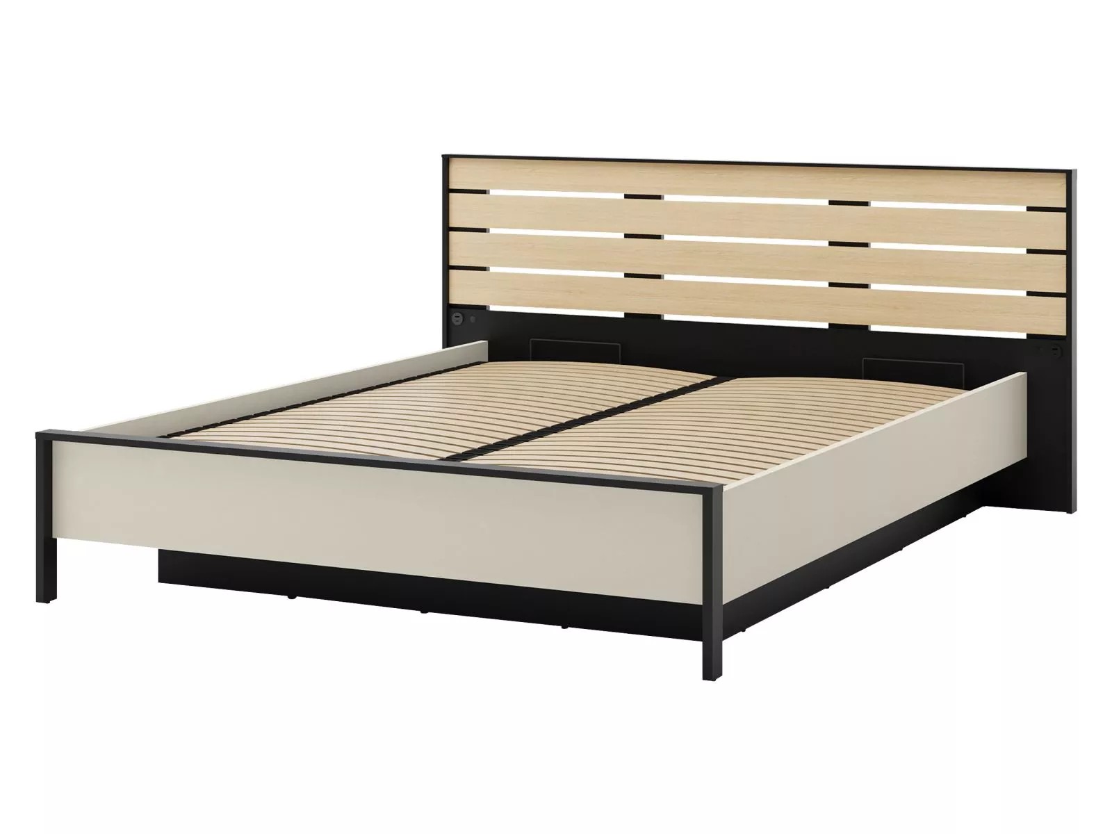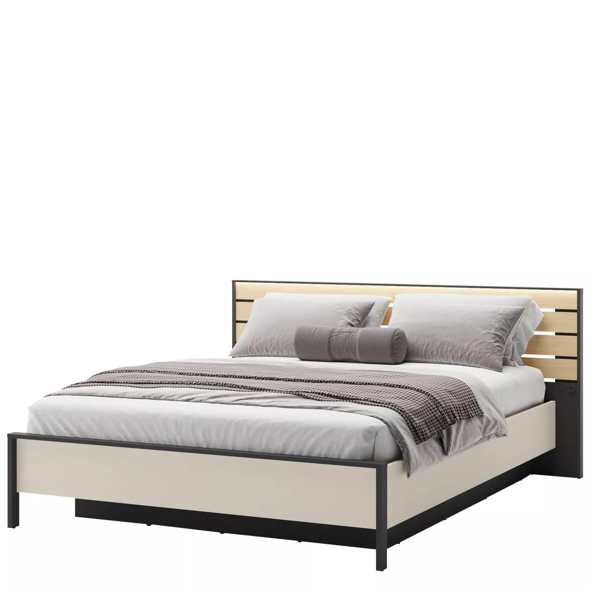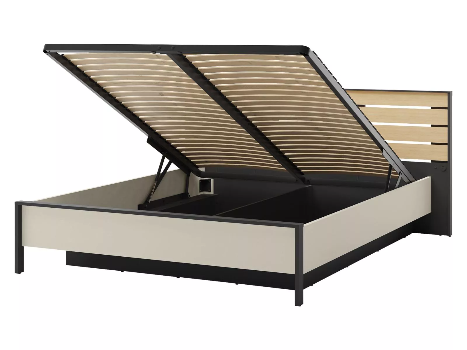 Manželská posteľ s úložným priestorom 160x200 REDMOND - dub / piesková béžová / čierna