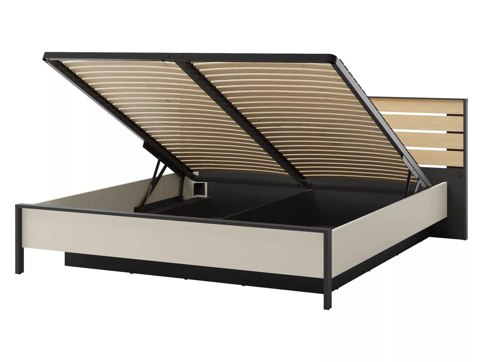 Manželská posteľ s úložným priestorom 180x200 REDMOND - dub / piesková béžová / čierna