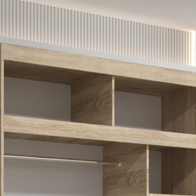 Nadstavec šírky 150 cm s posuvnými dverami ku skrini rovnakej šírky vyrieši nedostatok úložného priestoru a ponúkne ďalší priestor na uloženie náhradných lôžkovín či sezónnych vecí. Súčasťou nástavca sú dve priestranné komory.