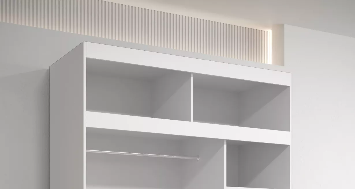 Nadstavec šírky 150 cm s posuvnými dverami ku skrini rovnakej šírky vyrieši nedostatok úložného priestoru a ponúkne ďalší priestor na uloženie náhradných lôžkovín či sezónnych vecí. Súčasťou nástavca sú dve priestranné komory.