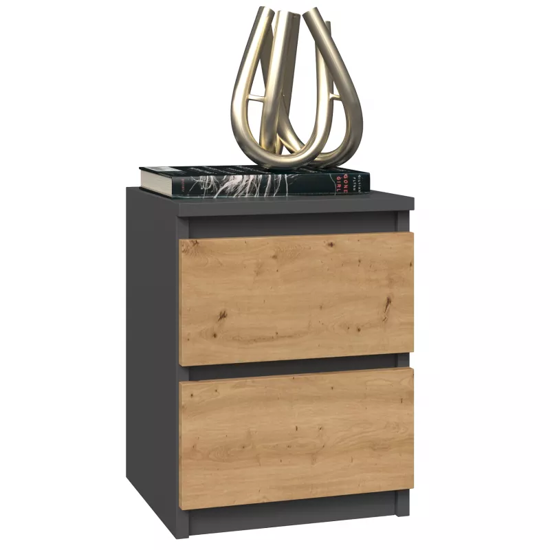 Elegantný a štýlový nočný stolík TAAVI je vybavený 2 zásuvkami. Bezúchytkové čelá zásuviek zaisťujú pohodlné používanie a zdôrazňujú modernistický charakter interiéru.