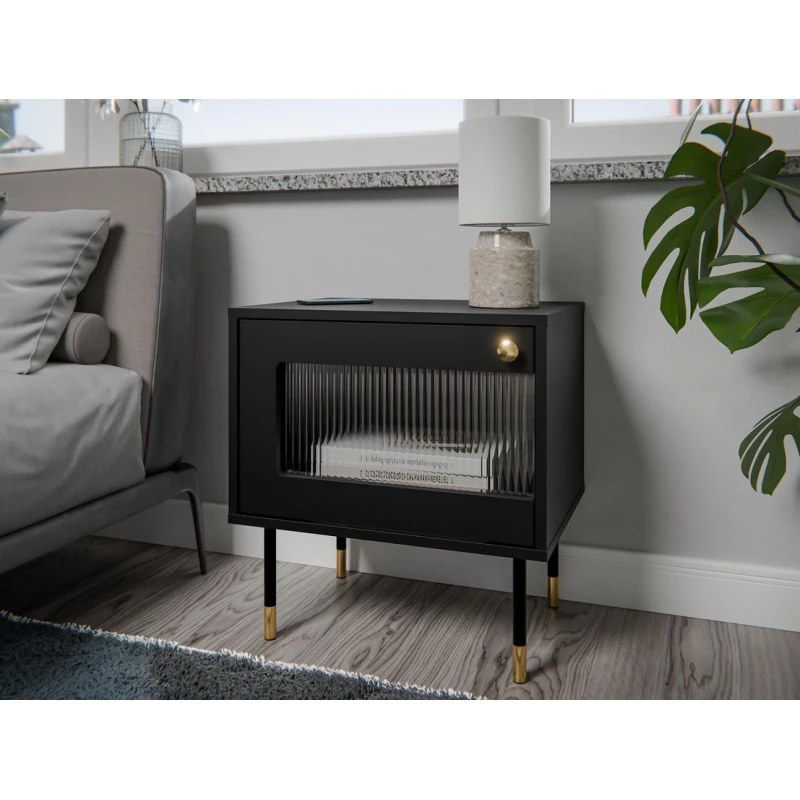 Zariaďte si modernú spálňu s kolekciou nábytku FORNEY. Set 2 nočných stolíkov šikovne doplní priestor vedľa postele. Ponúka nielen jedinečný vzhľad, ale aj úložný priestor skrytý za sklenenými dvierkami.
