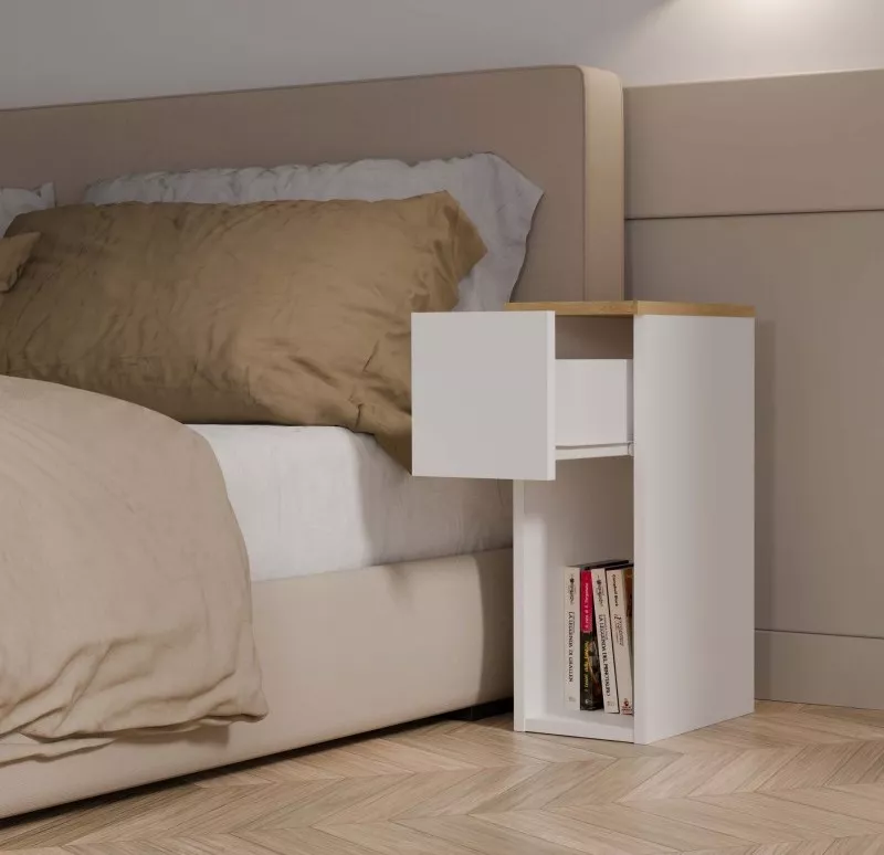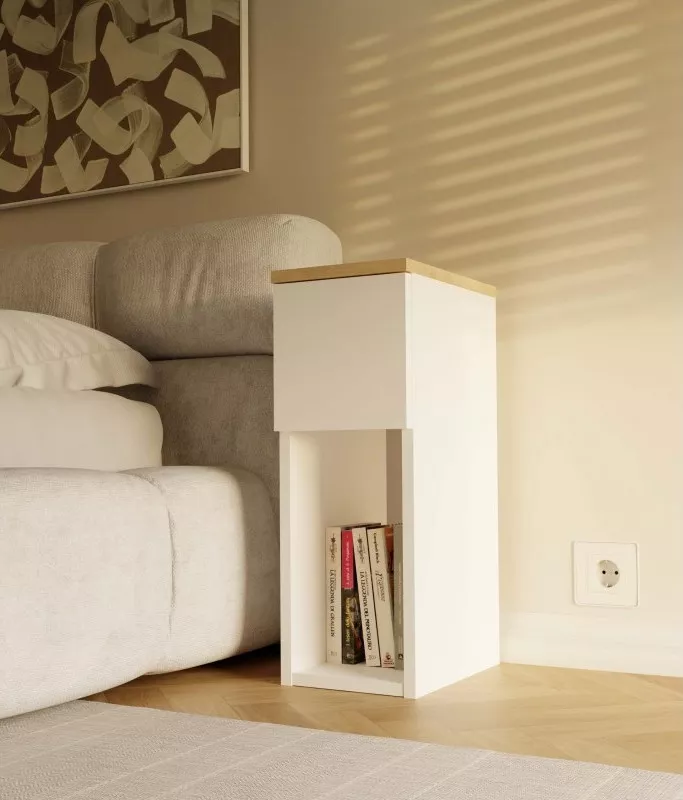 Nočný stolík FALKVILE 1 - biely / dub artisan