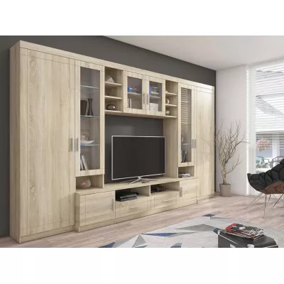 Obývacia stena KILLEN spája modernú eleganciu a praktické riešenie úložného priestoru, čo z nej robí dokonalý doplnok každej obývacej izby. Presklené vitríny dodávajú interiéru štýl, a zároveň umožňujú vystaviť dekorácie. Nechýba ani praktický TV stolík so šírkou 140 cm s možnosťou úschovy všetkého televízneho príslušenstva.