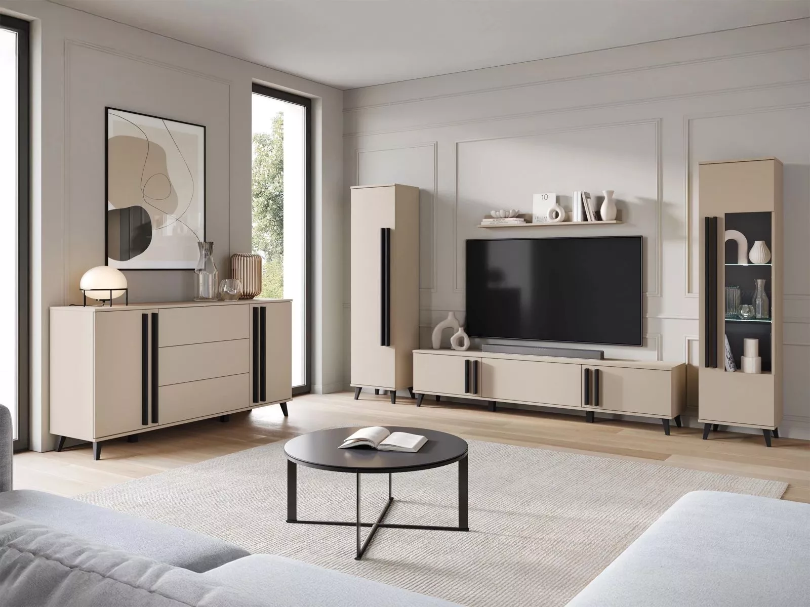 Vneste do svojho domova harmóniu a premyslený dizajn so zostavou POULSBO 4! Čisté línie, originálne úchytky a dekoratívne lišty spájajú eleganciu s praktickosťou. Široký televízny stolík skvele doplní moderný televízor, zatiaľ čo vitrína, polica, úzky regál a kombinovaná komoda poskytnú dostatok miesta na knihy, dekorácie aj osobné poklady. Celok pôsobí ľahko, moderne a dokonale ladí s útulnou atmosférou obývacej izby.