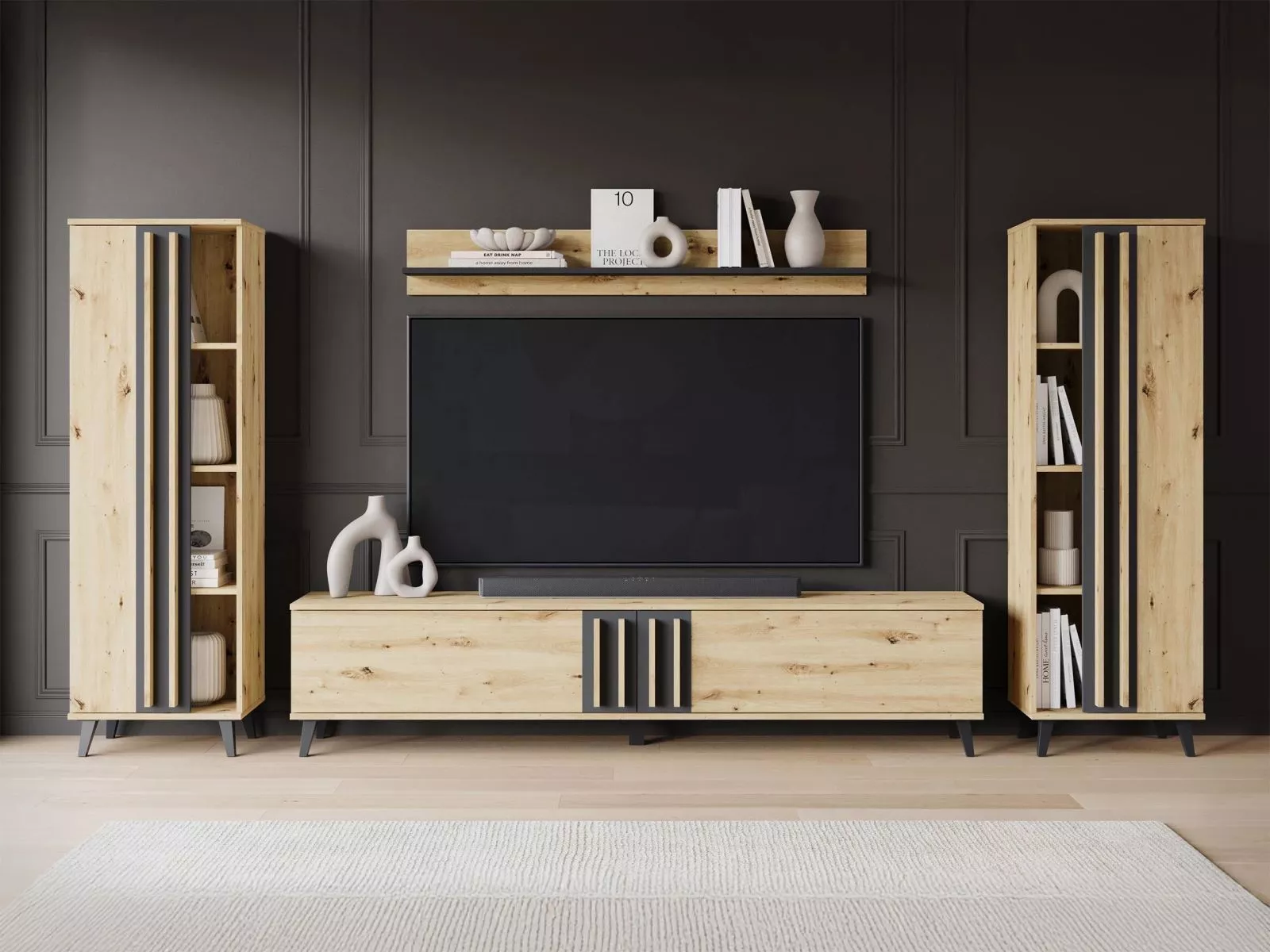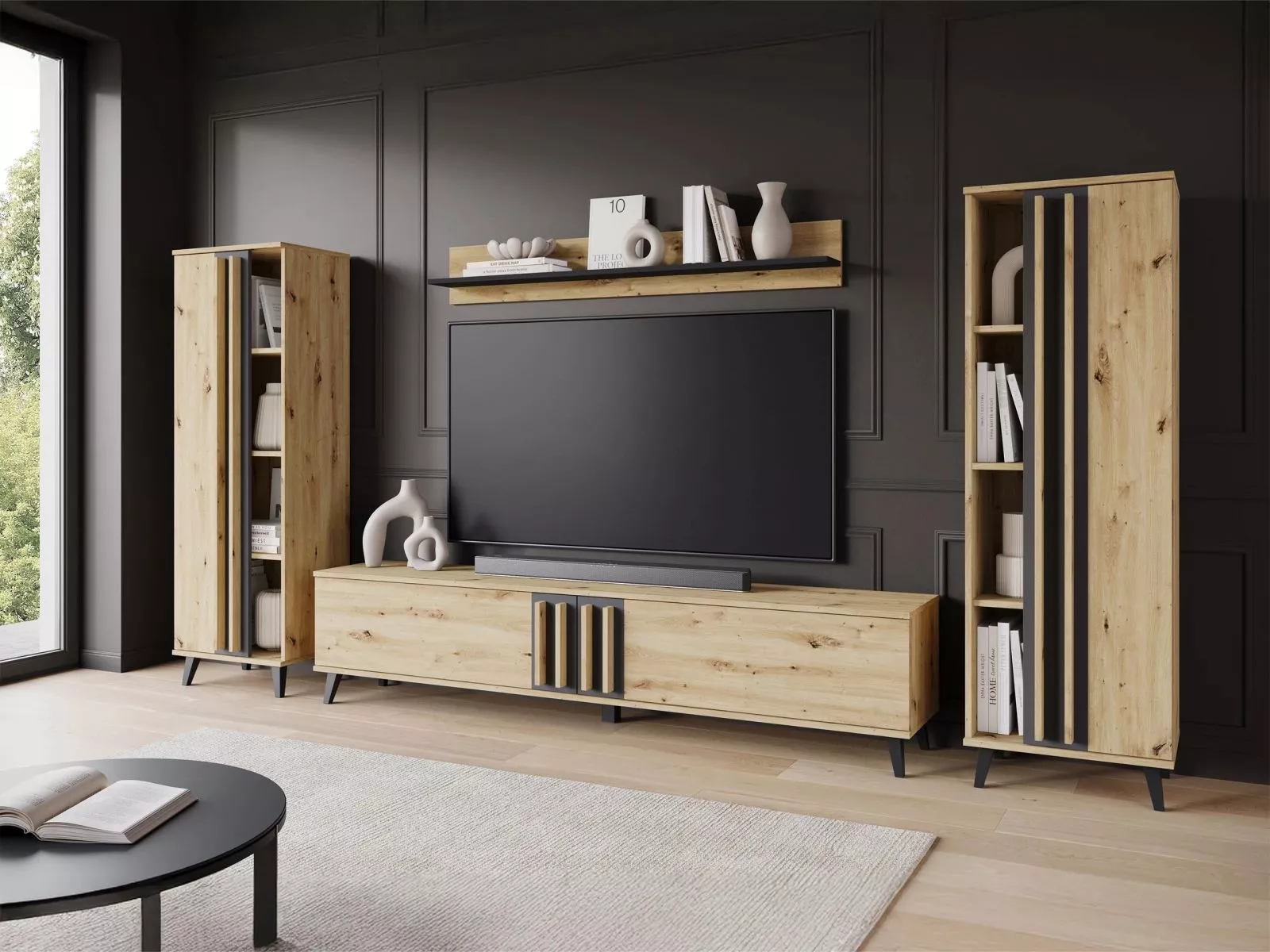 Stena do obývacej izby POULSBO 1 - dub artisan / čierna grafitová