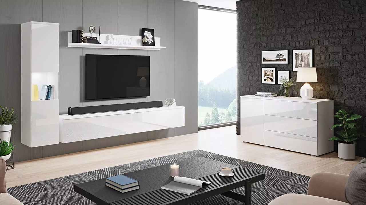 - vitrína aj TV stolík ponúkajú 2 spôsoby montáže – závesná/stojaca (nožičky sú súčasťou balenia)