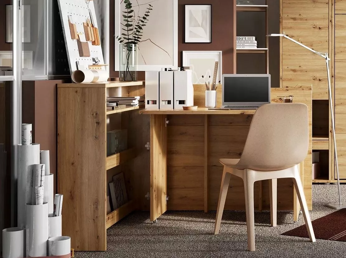 Skladací stôl CELENA je funkčné riešenie, ktoré umožňuje optimálne využitie priestoru a zaisťuje pohodlnú prácu. Jednou z hlavných výhod písacieho stola je skladacia horná doska, vďaka ktorej je možné stôl ľahko rozložiť a získať tak pracovnú plochu. Stôl je navyše vybavený úložným priestorom, ktorý umožňuje ukladať a organizovať kancelárske doplnky, dokumenty či knihy.