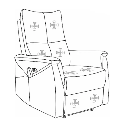 Masážne polohovacie kreslo JEAN je rozkladané elektricky. Na bočnej strane nájdete ovládanie s podsvieteným portom USB. Funkcia masáže je regulovateľná pomocou ovládača, na ktorom je možné nastaviť čas, výber miesta masáže, intenzitu a vyhrievanie. Z boku kresla nájdete aj vrecko, do ktorého môžete umiestniť ovládač.