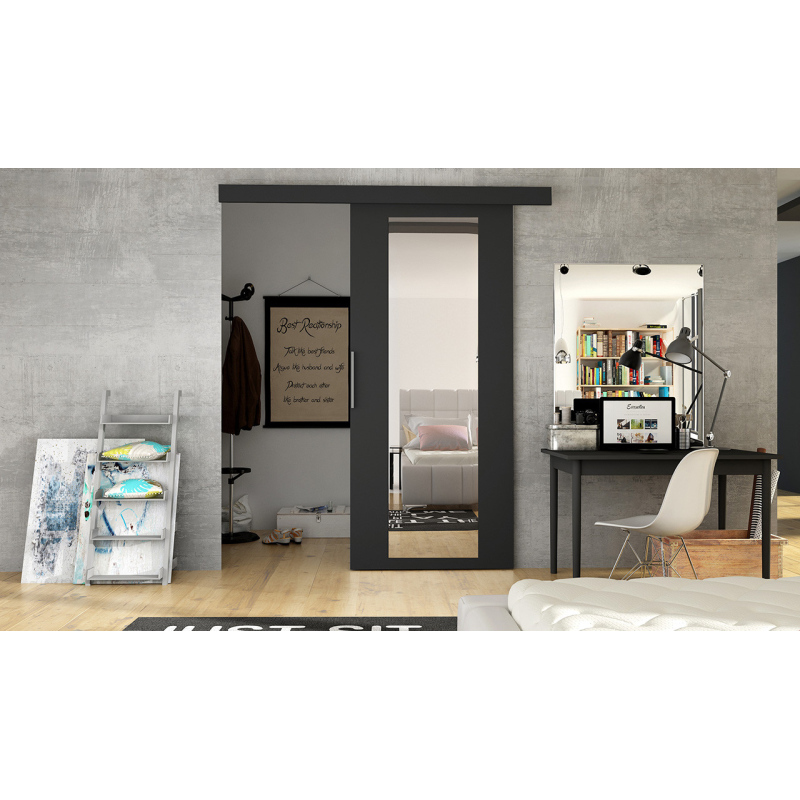 Moderné posuvné dvere na stenu so zrkadlom nielen že šetria miesto, ale zároveň oživia interiér. Veľmi obľúbené pri vstupe do šatne, ale aj ako klasický vchod do miestnosti. Posuvné dvere sú trendy a inštalácia je veľmi jednoduchá. Kvalitné opracovanie a ABS hrany zaručujú dlhovekosť. Elegantné kovové rukoväte zaisťujú pohodlné otváranie. Systém pojazdu, ložísk a inštalačný materiál je súčasťou.