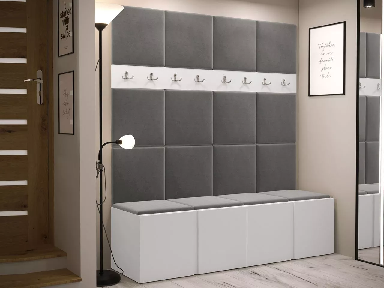 Stena do predsiene s botníkom a panelmi 42x42 SELAND 6 - biela / tmavo šedá