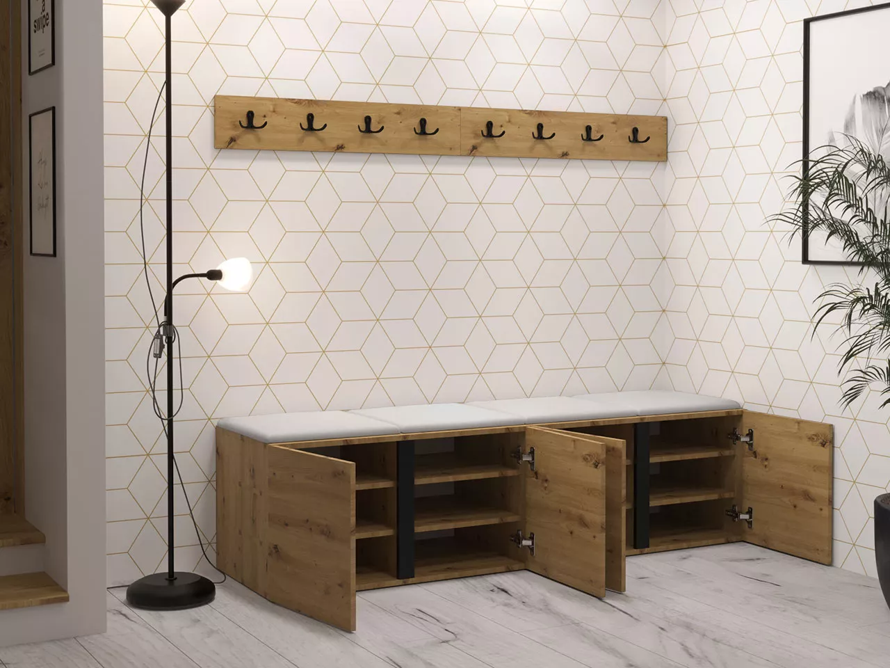 SELAND 8 predstavuje praktický nábytok, ktorý vytvorí základ pre vašu predsieň alebo vstupnú halu. Skladá sa zo sedacích botníkov s čalúnenými panelmi, ktoré vám poskytnú dokonalý komfort pri sedení. Nechýbajú ani nástenné panely s 8 vešiakmi.