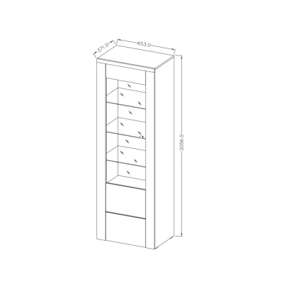 Vitrína z kolekcie Leonor je riešenie, ktoré obohacuje obývací priestor a zdôrazňuje krásu predmetov umiestnených v nej. Elegantný vzhľad prvku definuje presklená časť, pod ktorou sa nachádzajú police, na ktorých môžete umiestniť rôzne dekorácie. Veľký vplyv na konštrukciu má použitá nábytková doska, ktorá zodpovedá za dlhoročnú trvanlivosť ponuky.