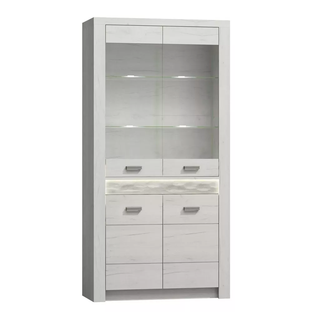 Presklená vitrína s LED osvetlením CHALAPATA - dub kraft biely