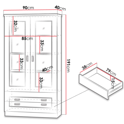 Funkčná a mimoriadne elegantná presklená vitrína MERLO skvele zapadne do klasického interiéru, kde poskytne ďalší úložný priestor a umožní vystaviť dekoratívne predmety alebo dôležité rodinné pamiatky. Spodnú časť tvoria dve zásuvky na drobné doplnky do domácnosti.