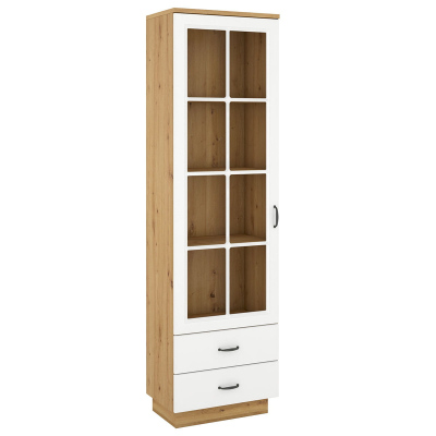 Vitrína so šuplíkmi FATMA - šírka 60 cm, dub artisan / biela