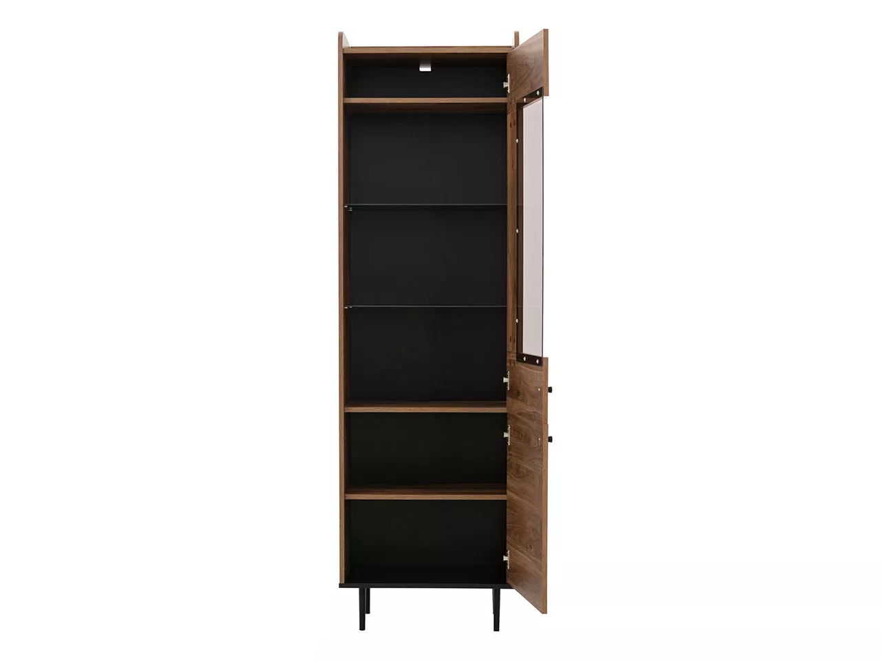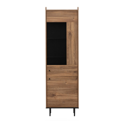Vysoká vitrína MARIKO 1 vyniká decentným tvarom a elegantnými farbami a skvele zapadá do interiéru založenom v loftovom štýle. Presklená časť umožňuje vystaviť rôzne dekorácie, zatiaľ čo uzatvorená časť poslúži na úschovu dokumentov.