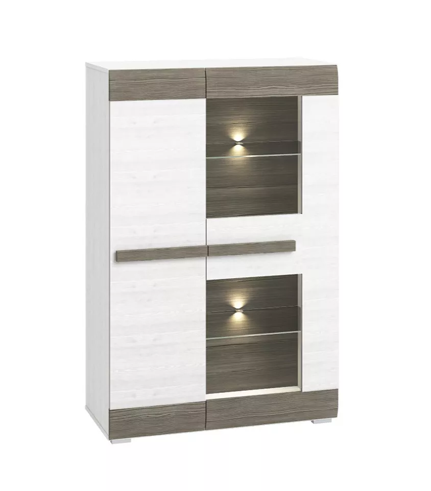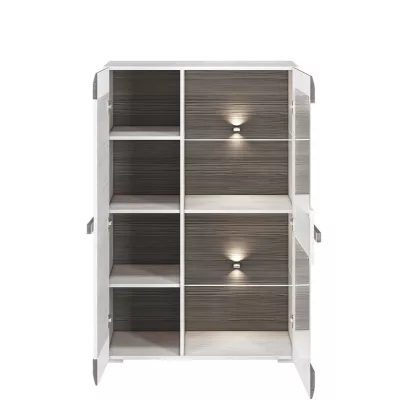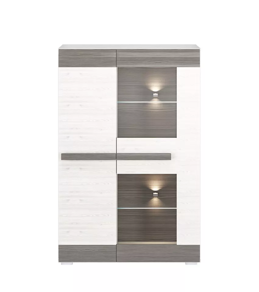 Vitrína s presklenou časťou ILKO - biela borovica / new grey