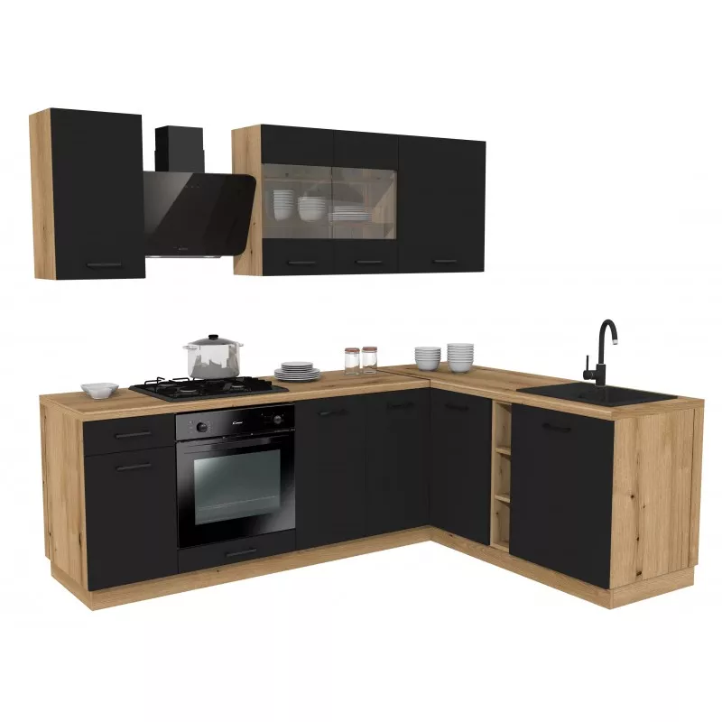 Rohová kuchynská linka 240x180 cm TAMPURI - dub evoke / čierna