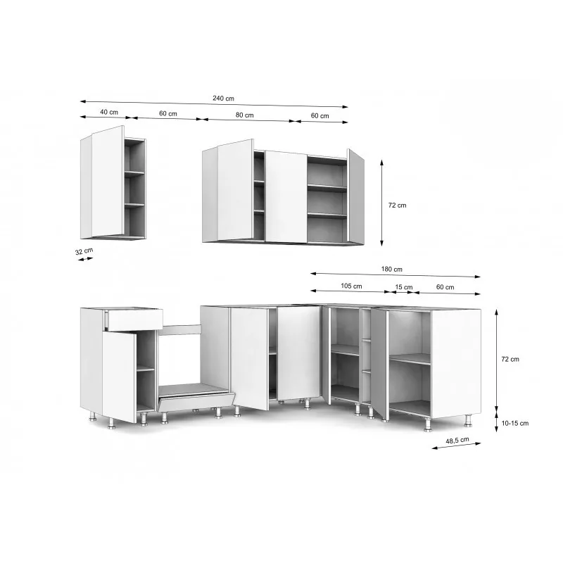 Rohová kuchynská linka TAMPURI ponúka dostatok úložného priestoru na uloženie všetkých kuchynských potrieb, od riadu až po potraviny. Vďaka svojim rozmerom skvele zapadne aj do menších priestorov. Je vyrobená z materiálov odolných voči poškriabaniu a vysokým teplotám, takže vám bude slúžiť mnoho rokov.